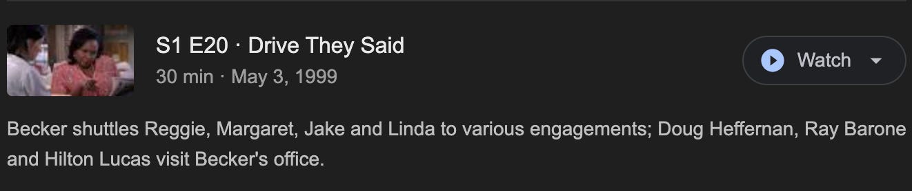 And these scenes aired at 9:30pm as Raymond rolled into Becker. Note how Raymond’s credits are already rolling, putting all of these scenes squarely in Becker territory.